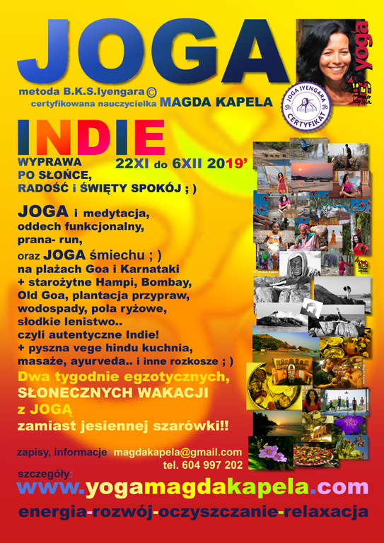 (UWAGA od 15tego lutego, przez 2 miesiące podróżuję, jak co rok, po Indiach. Wracam wprost na Jogiczną majówkę w Sopatowcu. Pod telefonem będę dostępna po 5 maja, wcześniej będę bywać w sieci- proszę o kontakt mailowy)